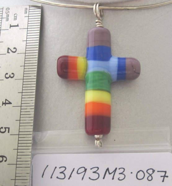 Matisse inspired soft glass tabular bead. 51 x 27mm. S/S wire