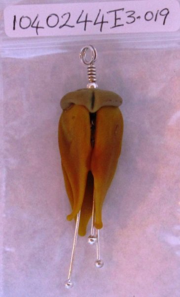 Orange Flax Flower, soft glass. Beautiful flower native to New Zealand. Sterling silver findings and stamen. Chain ready. 67 x 15mm.