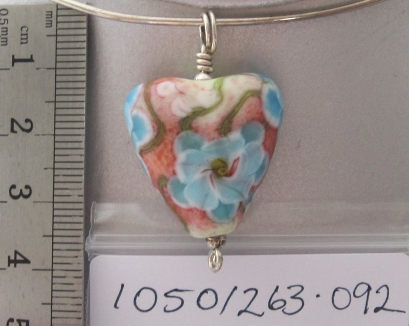 Red Floral Heart. Soft glass. Sterling silver findings. Chain ready. 35 x 22mm.