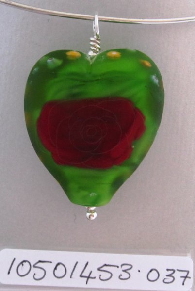 Softly Etched Floral Heart Pendant bead, in orange and lavender tones. Sterling silver beads .11 cm in length $95