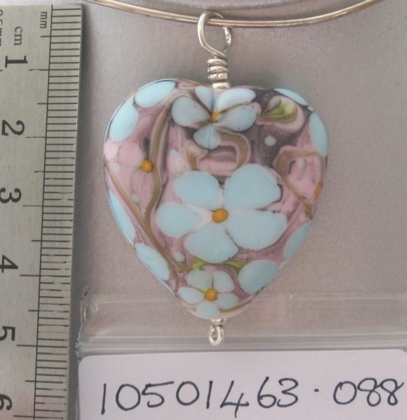 Bright green Heart pendant bead with red rose centre. Etched. 45 mm x 30 mm. $40