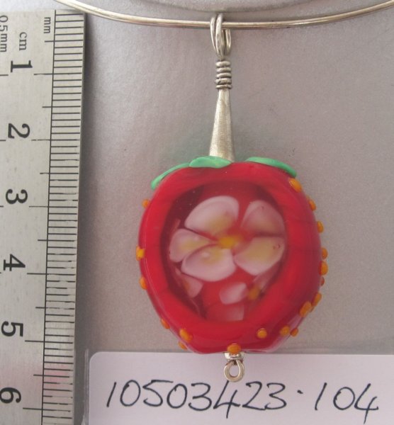 Large 50mm x 33mm. White Heart Bead Pendant with Red Roses (details drawn with titanium pen). $50