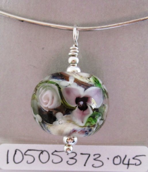 Small pink and blue floral bead pendant.35mm x 16mm $25