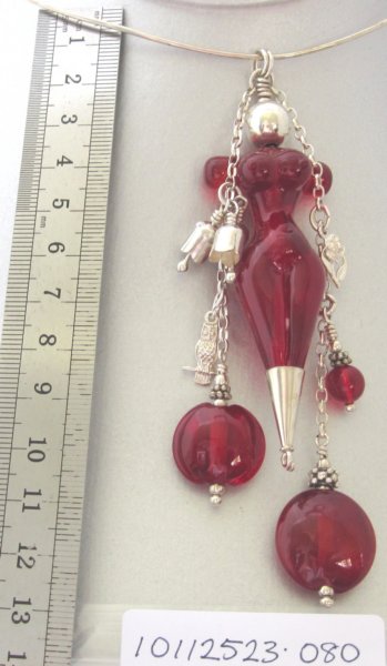 Chocolate Brown Goddess collection. Soft glass, mid/milk chocolate brown, with Sterling/Silver accents (Scallop shell, Spiral shell and bells ). Ready to wear on a chain. 83 x 30mm