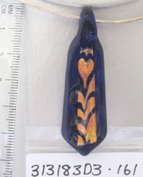 Red and Gold Dichroic Pendant, with blue boro background. $45
