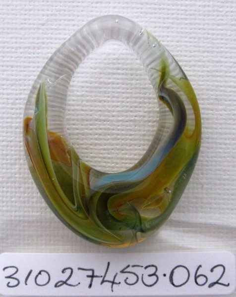 Red, Cream and Purple Open Circle Drop pendant. boro. 40mm x 32mm. $35