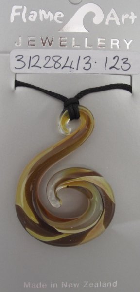 Brown and ivory hook Pendant.46mm x 25mm. Effetre. $35
