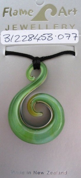 Pale green Hook Pendant. boro. 48mm x 28mm. $35