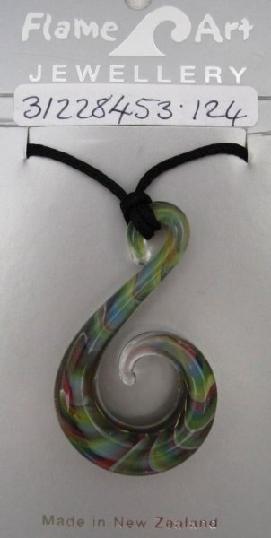 Jade green hook pendant. boro. 46mm x 33mm. $35