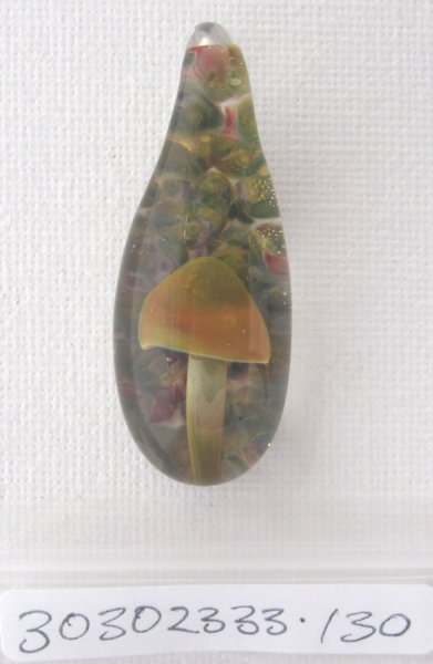 Orange Cap Mushroom Pendant. Boro. 45mm x 20mm. $30