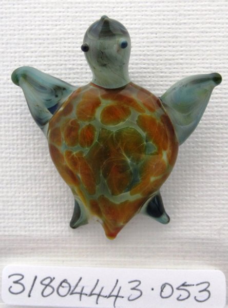 Circular Swirl Pendant, Red/Pink tones. boro. 35mm x 28mm. $30