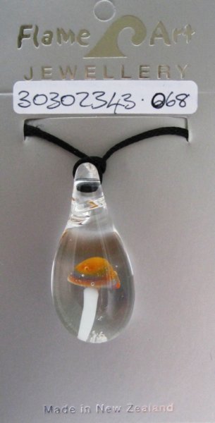 Dew drop Mushroom Pendant. Boro. 45mm x 20mm. $35