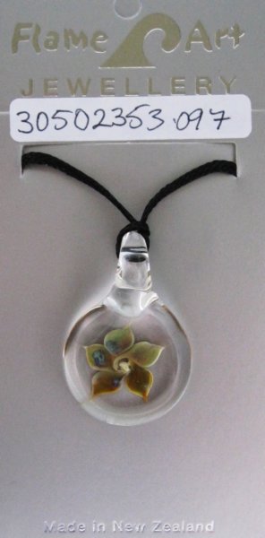 Orangey yellow Flower Pendant. Boro. 37mm x23mm. $30