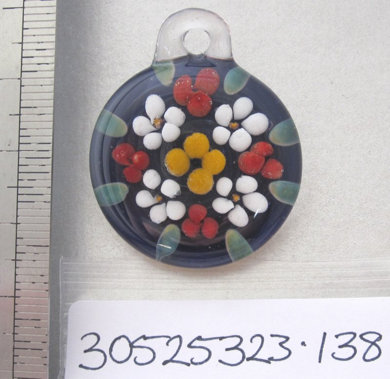 Bright Yellow Flower Pendant.(more Yellow than shown). Boro. 33mm x 22mm. $30