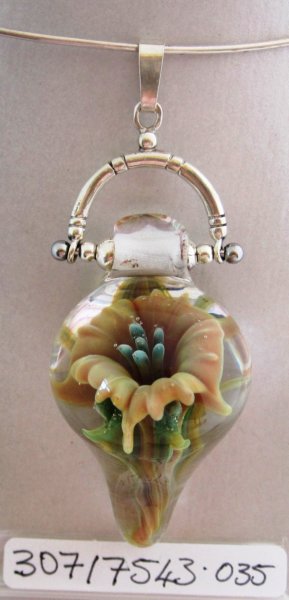 Periwinkle Flower Implosion on sterling silver fob. 62mm x 34mm. $75