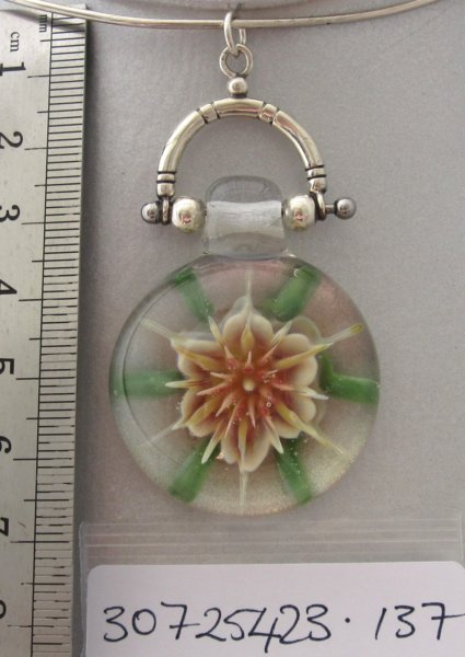Red Implosion Flower with sterling silver fob. boro. 60mm x 30mm. $75