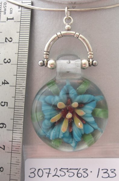 Bright Orange Implosion Flower with sterling silver fob. 60mm x 35mm. boro. $75