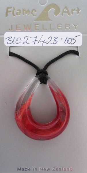 Red Open Circle Drop Pendant. boro. 40mm x 28mm. $35